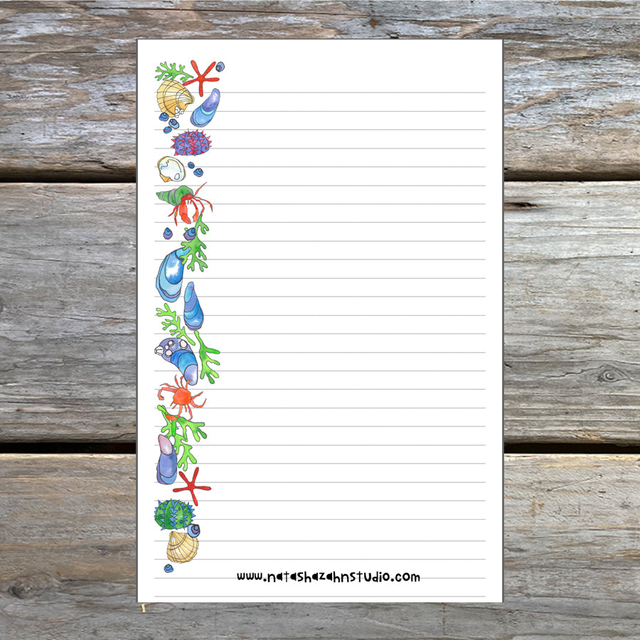 Sweet little set of marine themed items to keep summer at the beach alive a little bit longer! Enjoy a 50 page lined tablet, keep track of groceries on the 50 page shopping list (with a magnet on the back!), and write a note inside the card.